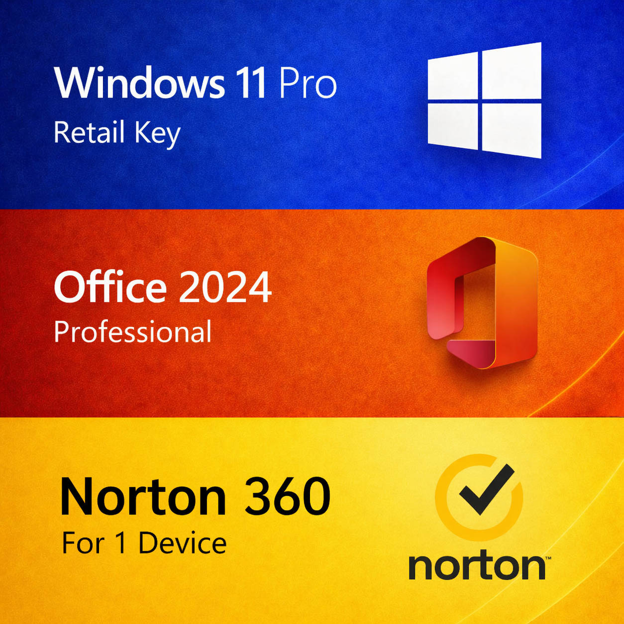 Bundle: Windows 11 Pro + Office 2024 Professional + Norton 360 Standard — Lifetime Keys (Windows)